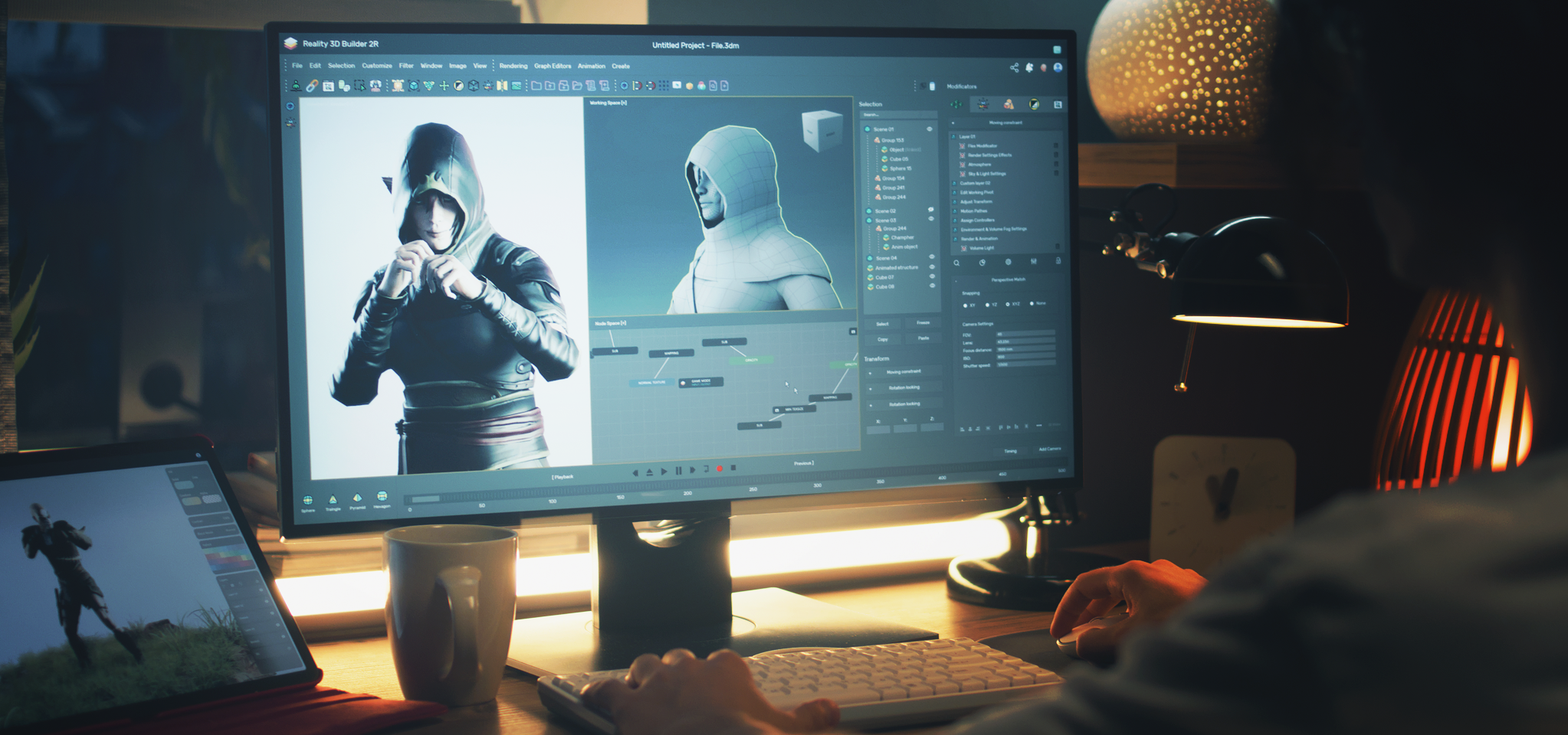 • Construire des maquettes 3D des modèles sous forme de maillage (communément appelés meshes ou wireframes). Ces maquettes permettent ensuite à l’artiste d’armature et squelette (rigging) de créer le système de contrôle des modèles en vue de l’animation.